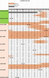 Planning des réservations 2025-2026 (Mis à jour : 15/11/2025)