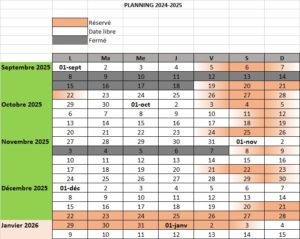 Planning des réservations 2025 (Mis à jour : 14/10/2025)